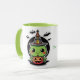 Esta personalizável design de caneca do tema "Dia das Bruxas" apresenta um monstro fofo cercado por morcegos com um texto que você pode personalizar.