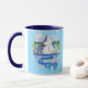 Representando uma paisagem serena, a montanha sobe majesticamente com seu reflexo espelhado no lago tranquilo embaixo. Cercado por arvores verdes e um céu pálido com uma nuvem que passa, a cena evoca um senso de paz e beleza natural. O uso de contornos ousados dá à imagem uma sensação cômica, quase cartunista.