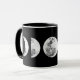 Uma caneca de café com tema espacial que apresenta as fases da lua.