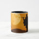A cinematic silhouette of a lone traveler and loyal dog standing beneath a glowing full moon. This warm, atmospheric design evokes adventure, friendship, and quiet reflection—perfect for coffee lovers who enjoy meaningful art with their daily drink.