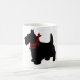 Um cão adorável do Scottie com um lenço de pescoço da xadrez desaparece e reaparece enquanto você derrama dentro uma bebida quente!