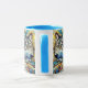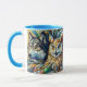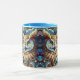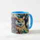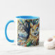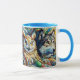 Ai art retratou um lobo e coruja no estilo do mosaico azulejo. Olhos azuis, lobo e caneca de café séria. Excelente para quem ama a vida selvagem.
