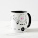 Esta caneca única mostra seu amor pela música com suas notas musicais design e manípulo preto.