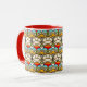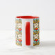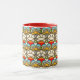 Esta caneca de cerâmica vibrantemente colorida foi inspirada por uma mistura eclética de estilos artísticos (vintage wallpaper japonês, figurinos projetados por Alphonse Mucha, e várias obras do ceramista Art Deco, Clarisse Cliff), ela traz cores vermelho-alaranjadas, azul e amarelo, formas orgânicas e distinção ousada para sua mesa.