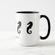 Cinco cavalos-marinhos negros nadando em uma linha ao redor da caneca. Abaixo, você pode personalizar com seu nome ou outro texto (ou remover o texto inteiramente).