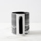 Mug com uma imagem branca e preta de um surfista saindo para um surf enquanto caminha sobre as rochas com a prancha de surfe na mão.