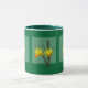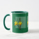 Imagem fotográfica de daffodils amarelos contra quadrados difusos em fundo verde escuro.