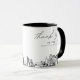 Modern Kansas City skyline café favorece presente com roteiro de "obrigado você". O design apresenta um desenho impressionante com a capacidade de personalizar seus nomes e o local exato. Digite a ferramenta Zazzle design para personalizações adicionais.