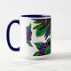Tome uma caneca relaxante da sua bebida quente favorita nesta caneca azul-magenta colorida Flores. Excelente em casa e no trabalho. Faça-o seu e aproveite!