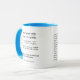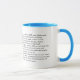 Esta caneca apresenta as mães Sh', a oração central dos Testamentos Antigo e Novo, em hebraico e inglês. De um lado, apresenta o texto hebraico de "Sh'mãe Yisra'el, YHWH Eloheinu, YHWH Echad" nos scripts Modern Ashuri, Paleo, e Paleo Samaritan Hebrew. Abaixo está a tradução para inglês. Do outro lado da caneca dá a tradução para inglês para o resto do V'ahavta, os 5 versos a seguir. Também apresenta o Nome do YHWH em hebraico no versículo 5.