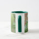 Esta linda caneca mostra uma fotografia de um monte de tomate verde-cereja não maduro crescendo em uma planta de tomate em um jardim suburbano. A fotografia foi tirada usando macro fotografia para um resultado detalhado. A design é mostrada em uma caneca verde de estilo de toque, mas também está disponível em vários outros estilos e cores de canecas.