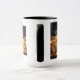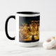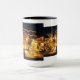 Esta caneca captura a magia da estação com uma imagem festiva de uma ventura ao brilho com luzes de férias.
