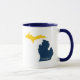 Vai Azul! Mostre seu U de orgulho de M e/ou Ann Arbor com este milho (península superior) e uma caneca azul (península inferior) com "Michigan" escrita no fundo da "mitten". Visite a coleção "Michigan" do nosso compro para obter mais produtos e opções de cores!