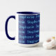 Nome em azul claro sobre fundo azul escuro. Personalize com o nome de sua escolha e ele será agrupado em um padrão de "meio tijolo".