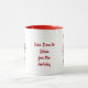 Relaxe pelos feriados. O centro/frente da caneca tem o texto "Tome tempo para relaxar no Feriado". Um lado mostra um elfo trabalhando com um saco de brinquedos. O verso mostra Papais noeis em T-shirt, shorts e óculos Sun.