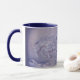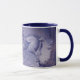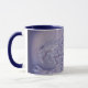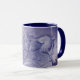 Wild horses running in the surf, with flying manes and tails, hooves in mid-air. Photograph of original ceramic relief image has been tinted blue. Artwork by Nora Chen.