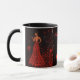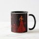 Belo Dia de os namorados Mug para seu amado, namorada, esposa, mãe, irmã. Esta caneca apresenta uma mulher com um vestido vermelho coberto por corações segurando uma rosa vermelha em ambos os lados da caneca. O fundo é um gradiente preto-a-vermelho escuro com corações flutuando ao redor. Esta caneca é perfeita para pessoas apaixonadas. Você pode encontrar uma placa de Dia de os namorados correspondente nas mesmas placas de Namorados e presentes de coleção.