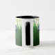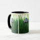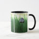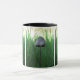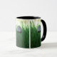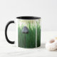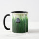 Cogumelo selvagem crescendo entre a grama. Repetido 3 vezes em volta da caneca.