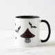 Um cogumelo bonito de vampiro, com um boné preto, manchas vermelhas, e pequenas presas fúngicas. Estão cercados por caves vampiras.