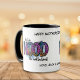 Aqui está uma linda caneca de café para a mãe para o Dia de as mães. Você também pode mudar o texto de cima e de baixo para que seja um presente apropriado para seu aniversário, ou qualquer outra ocasião especial. O texto impresso em dois lados diz "Não há HOOD como a maternidade", com HOOD sendo processado em uma impressão de animal-leopardo rosa, azul e ouro estilizada. Bonita!