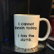 "Hoje Não Posso Cover. "I Has the Dumb" é uma maneira humorística e relacionável de amenizar o humor em dias em que o cérebro não está funcionando em sua primeira linha. É perfeito para amigos, colegas de trabalho, ou qualquer um que aprecie uma boa risada. É uma obrigação para qualquer um que experimente neblina cerebral.