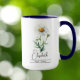 Mês de nascimento floresceu a caneca Daisy de abril com ilustração de uma flor margarida. Abaixo da flor, o nome é escrito em uma letra elegante. Abaixo do nome, ele diz "April - Daisy", indicando que o mês de nascimento é abril e que a flor da nascença é a margarida. É uma caneca personalizada, criada como um presente pensativo para alguém nascer em abril.