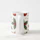 Aqui está uma caneca de Natal. A combinação de vermelho e verde lembra o Natal.