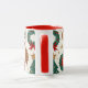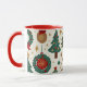 Esta é uma caneca de Natal com uma árvore e Rudolph desenhado nela.