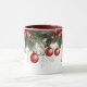 Esta caneca de Natal é um belo encapsulamento do espírito de Natal. Apresenta decorações de Natal vermelhas num galho da árvore de Natal. Feliz Natal e Feliz ano novo!