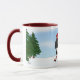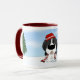 Design original do Natal de Terra Nova. Newfie com um bocado da neve em seu nariz e uma piscina do drool em suas patas. O boneco de neve irritado olha sobre. Para defender fora o frio que a Terra Nova tem em um lenço e em um chapéu que sejam as cores de seu país.