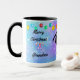 Esta linda caneca de Natal dançante pode ser personalizada com nomes de quem ela é.