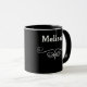 Uma caneca preta de café com um gráfico prateado, este item mostra o seu nome no topo escrito com uma bela fonte branca. Personalize o seu hoje! Tela de falso prata: Sonya DeHart Design em: http://www.sonyadehartdesign.com |http://www.sonyadehartdesign.etsy.com