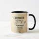 Escritura cristã de citações, caneca de café retrata um simples design de tonalidade de terra quente, vintage, com flores de dandelion em fundo de abstrato. Ele apresenta a legenda "Escolha a alegria" com uma Bíblia encorajadora Verse Nehemiah 8:10, "A alegria do Senhor é a minha força."