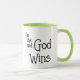 Um sapo bonito de desenho animado em uma almofada de lírios com a mensagem de alto-falante, "No final... Deus ganha" é uma maneira excelente de iluminar o dia de qualquer um! Num mundo em que tanta negatividade nos rodeia diariamente, pode realmente ajudar a manter as vossas prioridades à vossa frente. A cor da alça e do dentro pode ser alterada para várias cores dinâmicas diferentes.