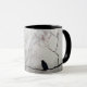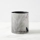 O corvo num dia de sopa de ervilha nebulosa tocado num galho parece surreal e sereno, perfeito para uma xícara de chocolate quente.