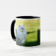 O gatinho branco bonito ajudá-lo-á a obter indo com seu café da manhã.