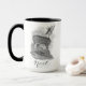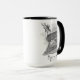 A black & white Christmas/Winter holiday mug with a beautiful antique etching of an exquisite deer accented with 'Noel'.