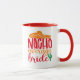 Caneca de Chá/Café Noiva Média Nacho Sombrero Espanhol Casamento Divertido apresenta o texto "Noiva Média Nacho" em tipografia moderna e divertida, acentuada com um sombrero e uma planta de cacto. Perfeita para a noiva em um chá de noiva ou dia do casamento. Desenhado por Evco Studio www.zazzle.com/store/evcostudio