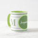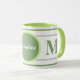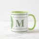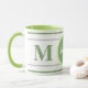 Monograma inicial em verde macio de ambos os lados. Nome na escrita branca no centro dos círculos verdes geométricos. Listras geométricas verdes e prateadas. Misture e combine padrões. Designs originais por TamiraZDesign.
