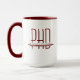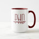 Uma caneca de café PhD alta com nome e grau design em burgundy sobre fundo branco. O dentro da caneca e o punho são burrados. Simplesmente personalize o nome, adicione esta caneca ao seu carrinho e aproveite a próxima xícara de café. Nome Burgundy PhD Grande Design de Feriado de Mug | ©Melissa Patton - Designer