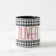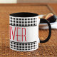 Um padrão clássico de verificação de búfalos preto e branco, manípulo e dentro é preto com o nome de fonte moderno, em vermelho. Altere facilmente o nome, adicione texto ou remova para torná-lo seu usando o Modelo, desde que seja uma caneca de bebida colorida combo 11oz, também disponível no tamanho de 15oz. Escolha entre 9 cores para alça e dentro ou 5 cores para 15oz. Consulte "Sobre este produto" ao lado para obter informações adicionais.