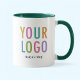 Personalize facilmente a nossa caneca de dois tons cerâmicos com o logotipo da sua empresa, o nome do destinatário ou outro texto personalizado. Você pode reduzir o custo dos copos descartáveis e ser verde dando aos funcionários a sua própria caneca reutilizável. Disponível em 11 onças e 15 onças com dentro verde escuro e alça. Também vendido em outras cores. Nenhuma quantidade mínima de ordem e nenhuma taxa de configuração.