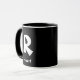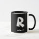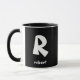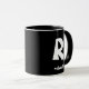 Design a sua caneca personalizada com um monograma e nome em preto clássico e branco. Personalize as cores de fundo e texto usando o recurso de personalização. Este modelo faz um presente pensativo para namorados, maridos, filhos, pais, noivos ou melhores homens, adequado para ocasiões como aniversários, casamentos, Natal ou formandos.
