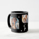 Monograma Name 3 Photo Collage Trendy Modern Coffee Mug apresenta uma coleção de fotos de três das suas fotos favoritas com seu nome personalizado e monograma em um roteiro elegante e branco. Personalize editando o texto nas caixas de texto fornecidas. Perfeito para aniversário, Natal, Dia de as mães, Dia de os pais, melhores amigos e muito mais. DICA DA FOTO: centralize suas fotos antes de carregá-las no Zazzle. Elaborado por ©Evco Studio www.zazzle.com/store/evcostudio