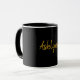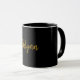 Uma caneca preta personalizada com o nome em um texto dourado. Isso daria um presente personalizado excelente para um colega de trabalho, amigo, etc.