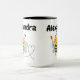 Nome pessoal personalizável, caneca de dois tons com design de Cute de uma abelha feliz voando com um traço em forma de coração e uma "varinha mágica". Uma grande caneca do dia a dia lembrando-vos da primeira busca pela felicidade e sorte. Adicione o seu nome e este será o seu grupo pessoal. Um presente perfeito e pensativo para uso frequente com amor próprio e um sentimento feliz. Espalhe o amor.