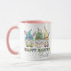 O Felz pascoa Gnomos Personalizados Coffee Mugs apresenta três gnomos bonitos de Páscoa com ovos de Páscoa com o texto colorido "Felz pascoa Y'all". Personalizado com seu nome personalizado abaixo em rosa. Personalize editando o texto na caixa de texto fornecida. Perfeito para presentes, festas e celebrações de Páscoa. Elaborado por ©Evco Holidays www.zazzle.com/store/evcoholidays