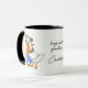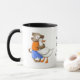Dog Duck Funny Love Script Personalized Name Coffee Tea Mug apresenta um desenho engraçado de um cachorro e pato com o texto "abraços e biscoitos" em um roteiro de caligrafia moderno. Personalizado com seu nome personalizado editando o texto na caixa de texto fornecida. Presentes perfeitos para Natal, aniversário, Dia de os namorados ou aniversário. Elaborado por ©Evco Studio www.zazzle.com/store/evcostudio