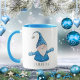 Uma linda caneca de Natal personalizada com gnomo alegre em azul.