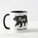 Esta rústica caneca de café com tema apresenta um urso preto sobre fundo branco. O urso diz "Papa" sobre ele em tipografia branca com um nome abaixo para você personalizar. Projetado pelo famoso artista mundial Tim Coffey.